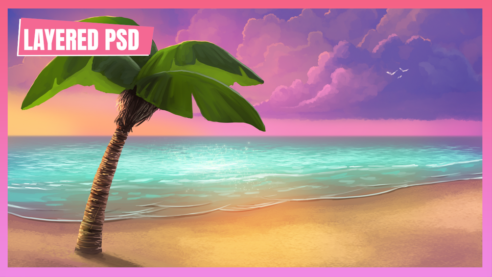Fully layered high resolution PSD file of a sunset beach scene!